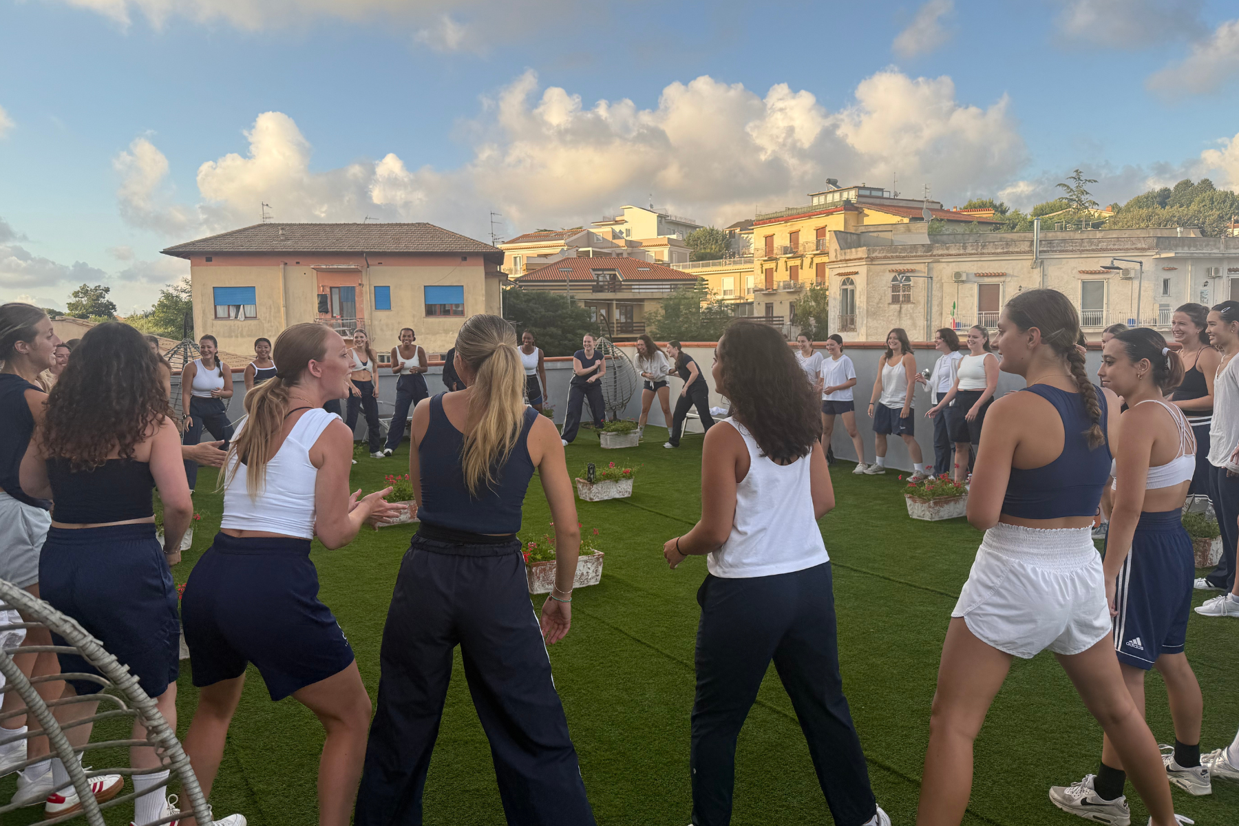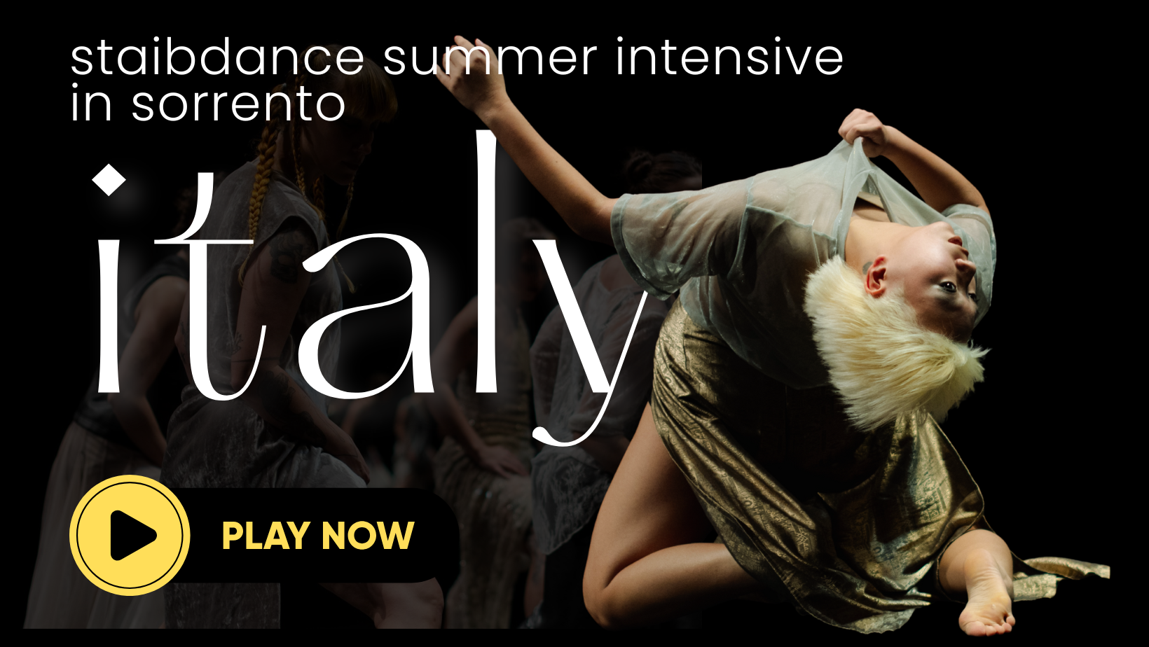 The staibdance summer intensive in Sorrento, Italy, serves as a meeting place for emerging and established movement artists from across the globe. Participants are encouraged to create collaboratively, embrace spontaneity, build foundations for life-long connections, and hone authentic, unique voices. The intensive is a source for personalized attention and provides individuals time and space for infinite growth as artists. Together, participants merge with the history, customs, and warmth of the region, celebrating cultural exchange.